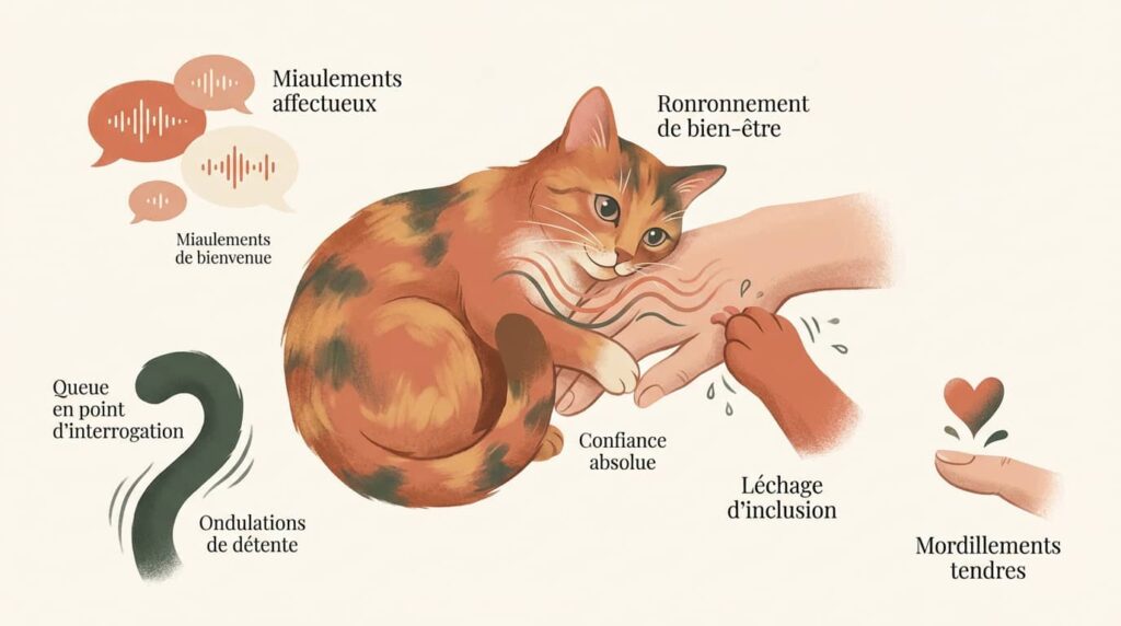 Le ton des vocalises révèle beaucoup. Un miaulement court et aigu sert souvent de salutation joyeuse. C’est une manière tendre de vous dire bonjour.